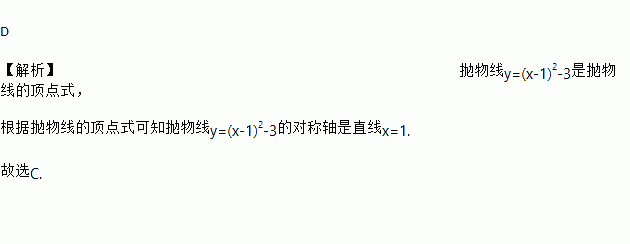 D 【解析】抛物线y=(x-1)2-3是抛物线的顶点式, 根据抛物线的顶点式可知抛物线y=(x-1)2-3的对称轴是直线x=1. 故选C.