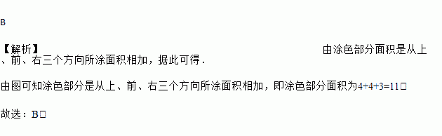 由5个棱长为1的小正方体组成的几何体如图放置,一面着地,两面靠墙.如果要将露出来的部分涂色,则涂色部分的面积为( )