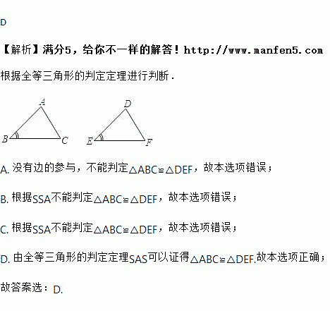 C. AB=DE,∠B=∠E,AC=DF D. AB=DE,∠B=∠E,BC=EF
