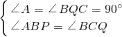 ∵∠ABP+∠PBC=90°,∠BCQ+∠PBC=90°.