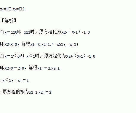 请参照例题解方程x2﹣|x﹣1|﹣1=0.