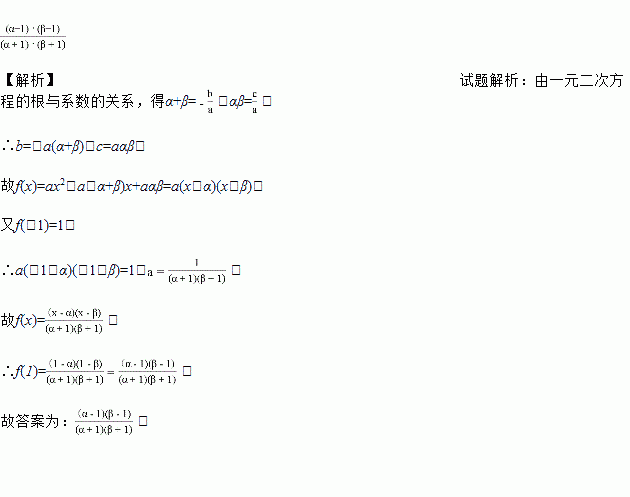 若函数f(x)=ax2+bx+c的图象通过点(﹣1,1)、(α,0)与(β,0),则用α、β表示f(1)得f(1)=_____.