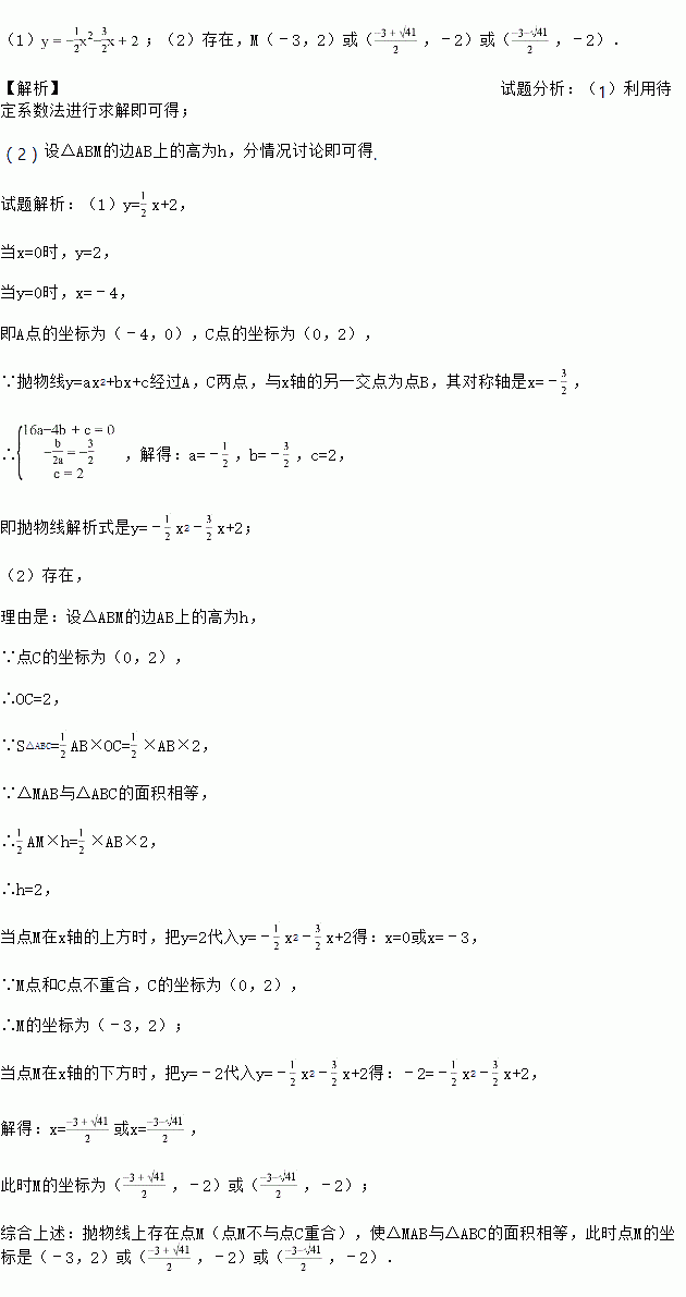 (2)抛物线上是否存在点M(点m不与点C重合),使△MAB与△ABC的面积相等?若存在,求出点M的坐标;若不存在,请说明理由.
