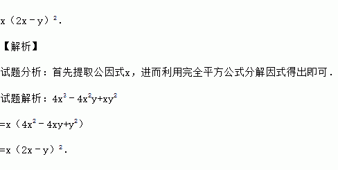 分解因式:4x3﹣4x2y+xy2= .