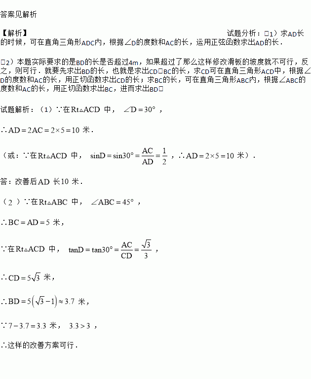 分)如图,某幼儿园为了加强安全管理,决定将园内的滑滑板的倾角由