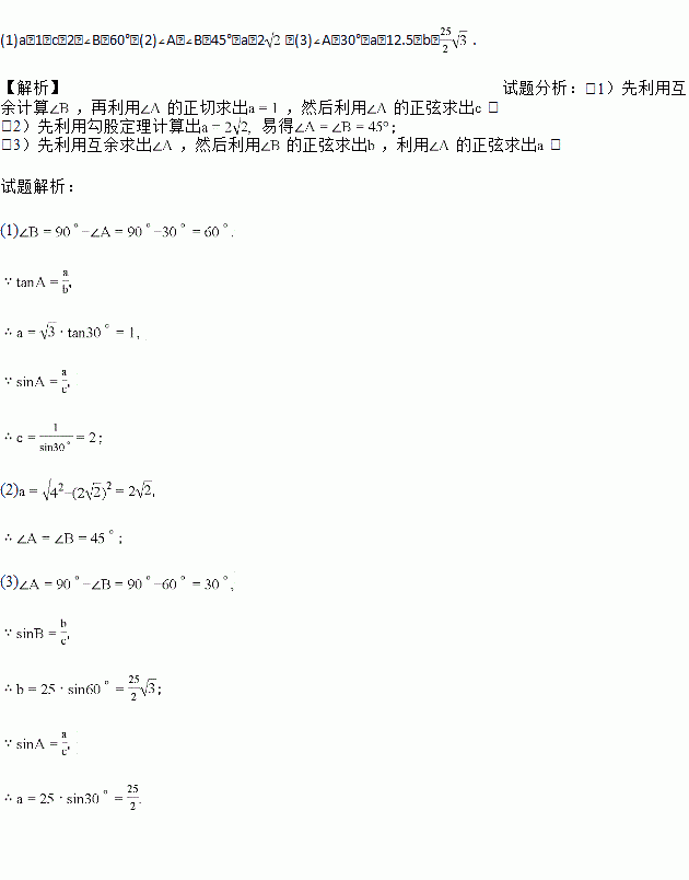 根据下列条件解直角三角形(Rt△ABC中,∠C=90°).