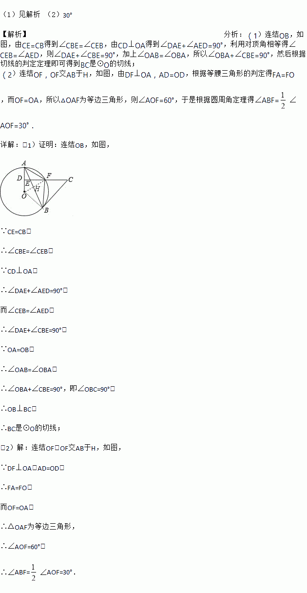 如图,AB是⊙O的弦,D为半径OA的中点,过D作CD⊥OA交弦AB于点E,交⊙O于点F,且CE=CB
