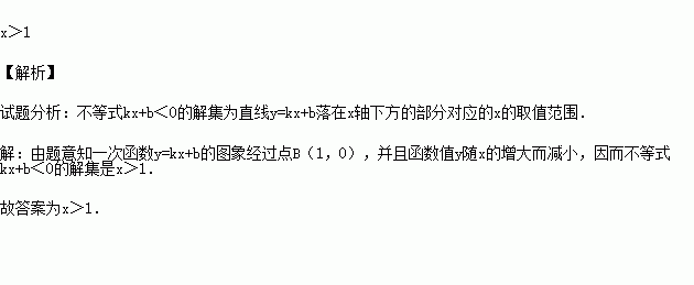 (2015秋•兴化市校级月考)如图,一次函数y=kx+b的图象经过点A(0,2),点B(1,0),则不等式kx+b<0的解集为 .