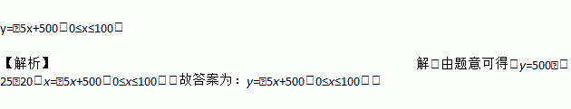甲乙两车沿直路同向行驶,车速分别为20m/s和25m/s.现甲车在乙车前500m处,设xs(0≤x≤100)后两车相距ym.那么y关于x的数解析式为________ (写出自变量取值范围)