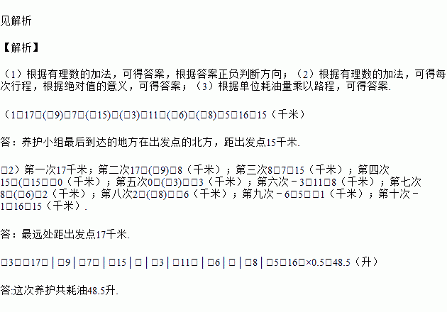 (1)养护小组最后到达的地方在出发点的哪个方向?距出发点多远?