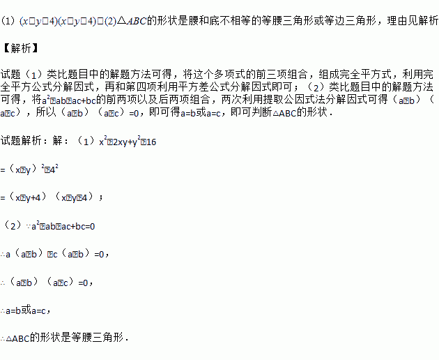 这种分解因式的方法叫分组分解法。利用这种方法解决下列问题: