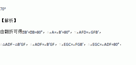 如图,已知等边三角形ABC中,点D,E分别在边AB,BC上,把△BDE沿直线DE翻折,使点B落在B′处,DB′,EB′分别交AC于点F,G.若∠ADF=80°,则∠DEG的度数为________.