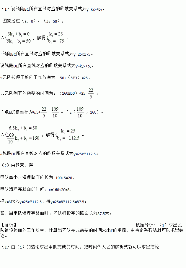 (2)当甲队清理完路面时,求乙队铺设完的路面长.