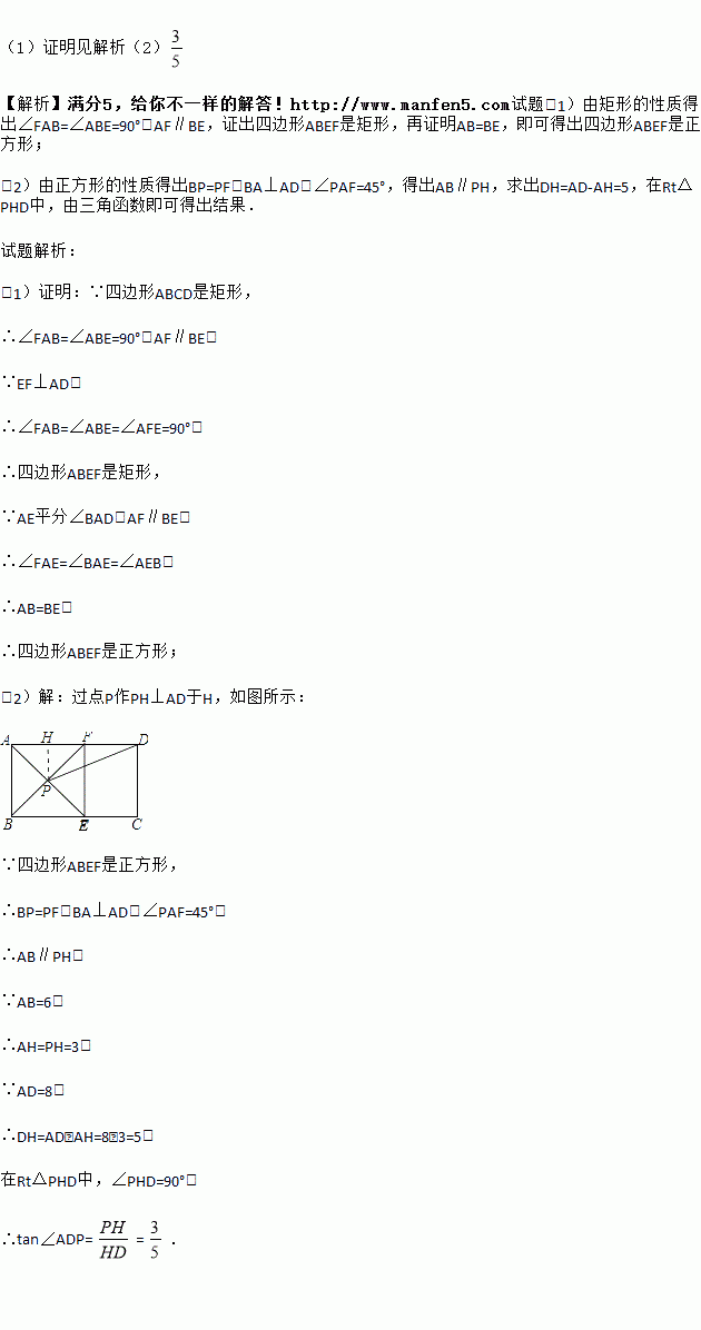 如图,在矩形ABCD中,AE平分∠BAD,交BC于E,过E做EF⊥AD于F,连接BF交AE于P,连接PD.