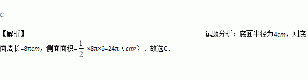 已知圆锥的底面半径为4cm,母线长为6cm,则它的侧面展开图的面积等于( )