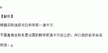 数学很多的知识都是以发明者的名字命名的,如韦达定理、杨辉三角、费马点等,你知道平面直角坐标系是哪一位法国的数学家创立的,并以他的名字命名的吗?( )