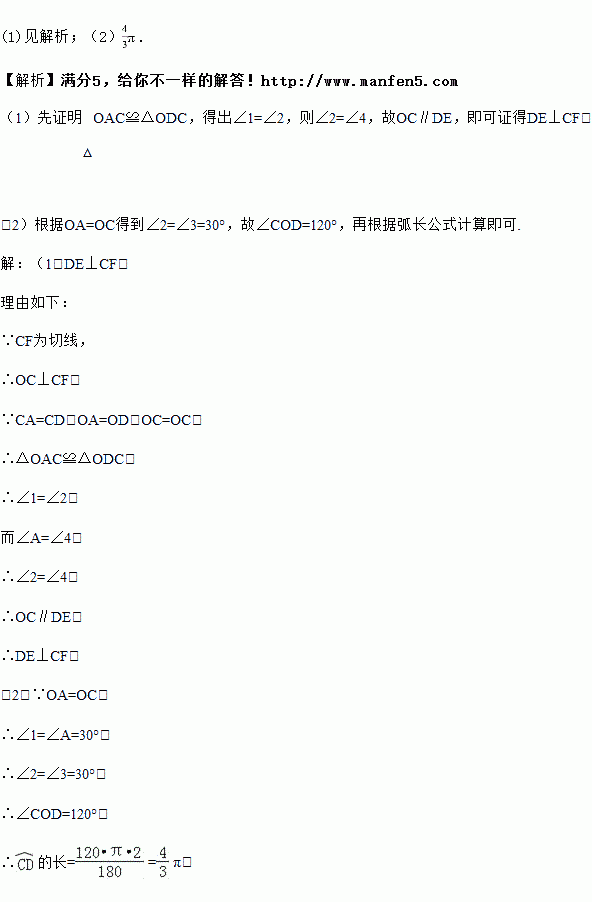(1)试判断直线DE与CF的位置关系,并说明理由;