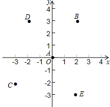 请在下面的直角坐标系中(如图),标出下列各点:A(0,0).B(2,3),C(-3,-2),D(-2,3),E(2,-3).