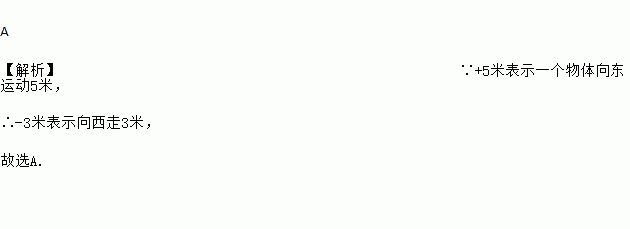 A 【解析】∵+5米表示一个物体向东运动5米, ∴-3米表示向西走3米, 故选A.