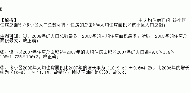 根据以上信息,则下列说法:①该小区2006~2008年这三年中,2008年住房总面积最大;②该小区2007年住房总面积达到1.728×106 m