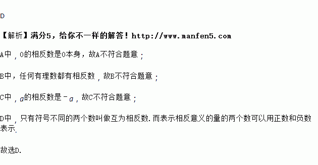C. a的相反数是-a D. 表示相反意义的量的两个数互为相反数