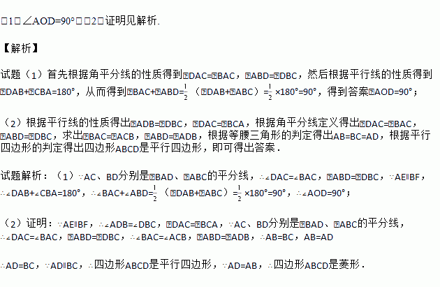如图,AE∥BF,AC平分∠BAE,且交BF于点C,BD平分∠ABF,且交AE于点D,AC与BD相交于点O,连接CD