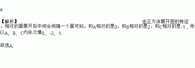 A ¡¾½âÎö¡¿ÓÉÕý·½ÌåÕ¹¿ªÍ¼µÄÌØÕ÷£¬Ïà¶ÔµÄÃæÕ¹¿ªºóÖмä»á¼ä¸ôÒ»¸öÃæ¿ÉÖª£¬ºÍAÏà¶ÔµÄÊÇ0£¬ºÍBÏà¶ÔµÄÊÇ2£¬ºÍCÏà¶ÔµÄÊÇ-1£¬ËùÒÔA¡¢B¡¢CÄÚÒÀ´ÎÌî0¡¢-2¡¢1. ¹ÊÑ¡A.