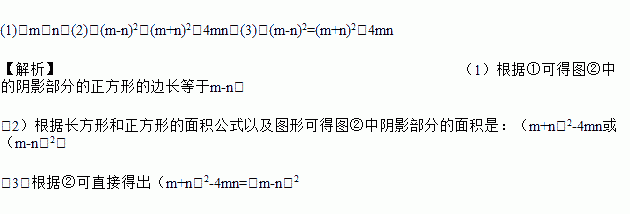 (3)观察图②,你能写出(m+n)2,(m-n)2,mn这三个代数式间的等量关系吗?