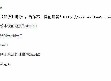 某船顺流航行的速度为20千米/时,逆流航行的速度为16千米/时,则水流的速度为( )