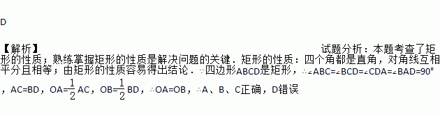 如图,在矩形ABCD中,对角线AC、BD交与点O,以下说法错误的是( )