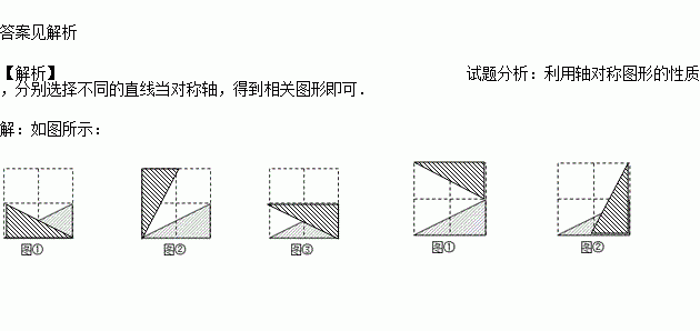 请在下列三个2×2的方格中,各画出一个三角形,要求所画三角形与图中三角形成轴对称,且所画的三角形顶点与方格中的小正方形顶点重合,并将所画三角形涂上阴影.(注:所画的三个图形不能重复)