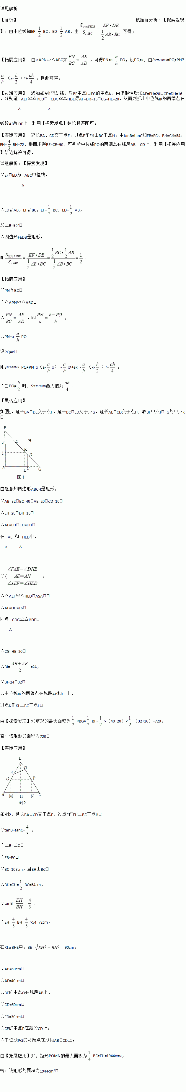 如图②,在△ABC中,BC=a,BC边上的高AD=h,矩形PQMN的顶点P、N分别在边AB、AC上,顶点Q、M在边BC上,则矩形PQMN面积的最大值为 .(用含a,h的代数式表示)