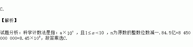 A. 0.845×1010元 B. 84.5×108元 C. 8.45×109元 D. 8.45×1010元