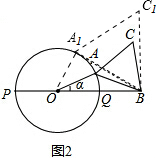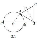 3.如图1,PQ为⊙O的直径,点B在线段PQ的延长线上,OQ=QB=$\frac{1}{2}$,动点A在⊙O的上半圆运动(含P、Q两点),以线段AB为边向上作等边三角形ABC.(1)当线段AB所在的直线与⊙O相切时,则AB=$\frac{\sqrt{3}}{2}$;