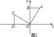②△AOB绕点O逆时针旋转90°至△COD位置,如图2,![]()