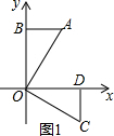①△AOB绕点O顺时针旋转90°至△COD位置,如图1,