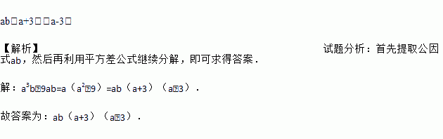 分解因式:a3b﹣9ab=_____.
