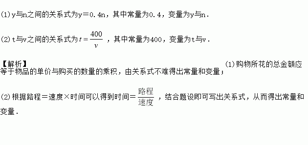 写出下列各问题中所满足的关系式,并指出各个关系式中,哪些量是常量,哪些量是变量.