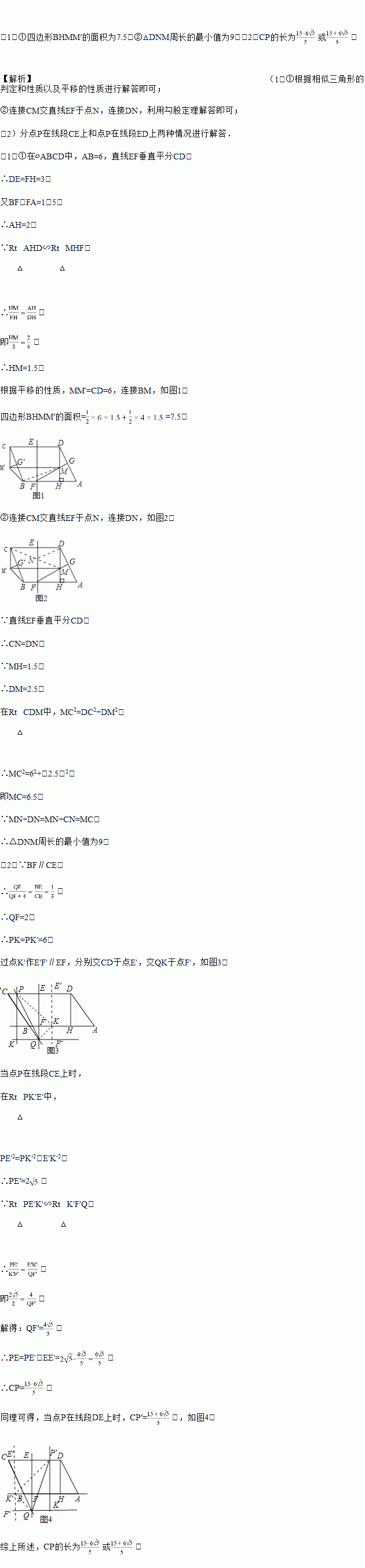(1)如图2,作FG⊥AD于点G,交DH于点M,将△DGM沿DC方向平移,得到△CG′M′,连接M′B.