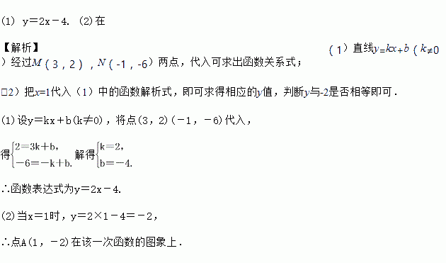(2)请判定点A(1,-2)是否在该一次函数的图象上,并说明理由.
