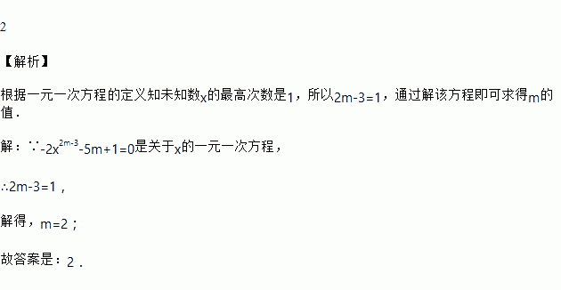 若-2x2m-3-5m+1=0是关于x的一元一次方程,则m=_______.