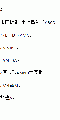 (2011•海南)如图,将平行四边形ABCD折叠,使顶点D恰落在AB边上的点M处,折痕为AN,那么对于结论 ①MN∥BC,②MN=AM,下列说法正确的是( )