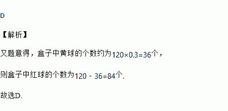 一个不透明的盒子里装有120个红、黄两种颜色的小球,这些球除颜色外其他完全相同,每次摸球前先将盒子里的球摇匀任意摸出一个球记下颜色后再放回盒子,通过大量重复摸球试验后发现,摸到黄球的频率稳定在0.3,那么估计盒子中红球的个数为( )