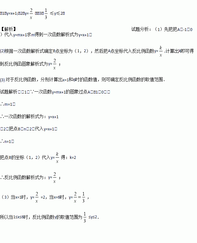 (3)直接写出求当1≤x≤6时,反比例函数y的取值范围.