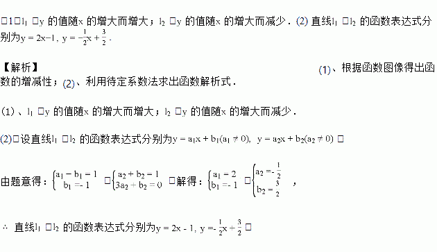 (1)分别写出直线、中变量y随x变化而变化的情况;