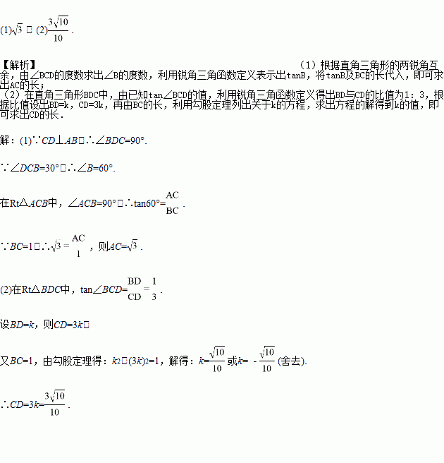 如图,在△ABC中,∠ACB=90º,CD⊥AB,BC=1.