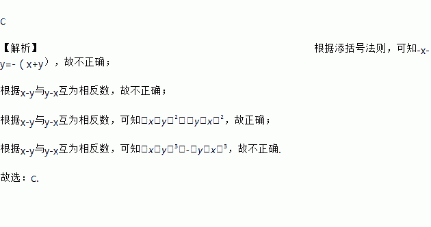 A. -x-y=-(x-y) B. y-x=x-y