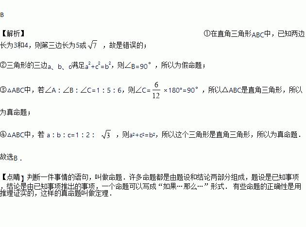 ①在直角三角形ABC中,已知两边长为3和4,则第三边长为5;