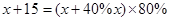 一家商店将某种服装按成本提高40%标价,又以8折优惠卖出,结果每件服装仍可获利15元,则这种服装每件的成本价是( )