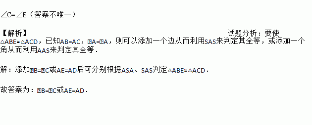 如图,AB=AC,要使△ABE≌△ACD,应添加的条件是___________.(添加一条件即可).